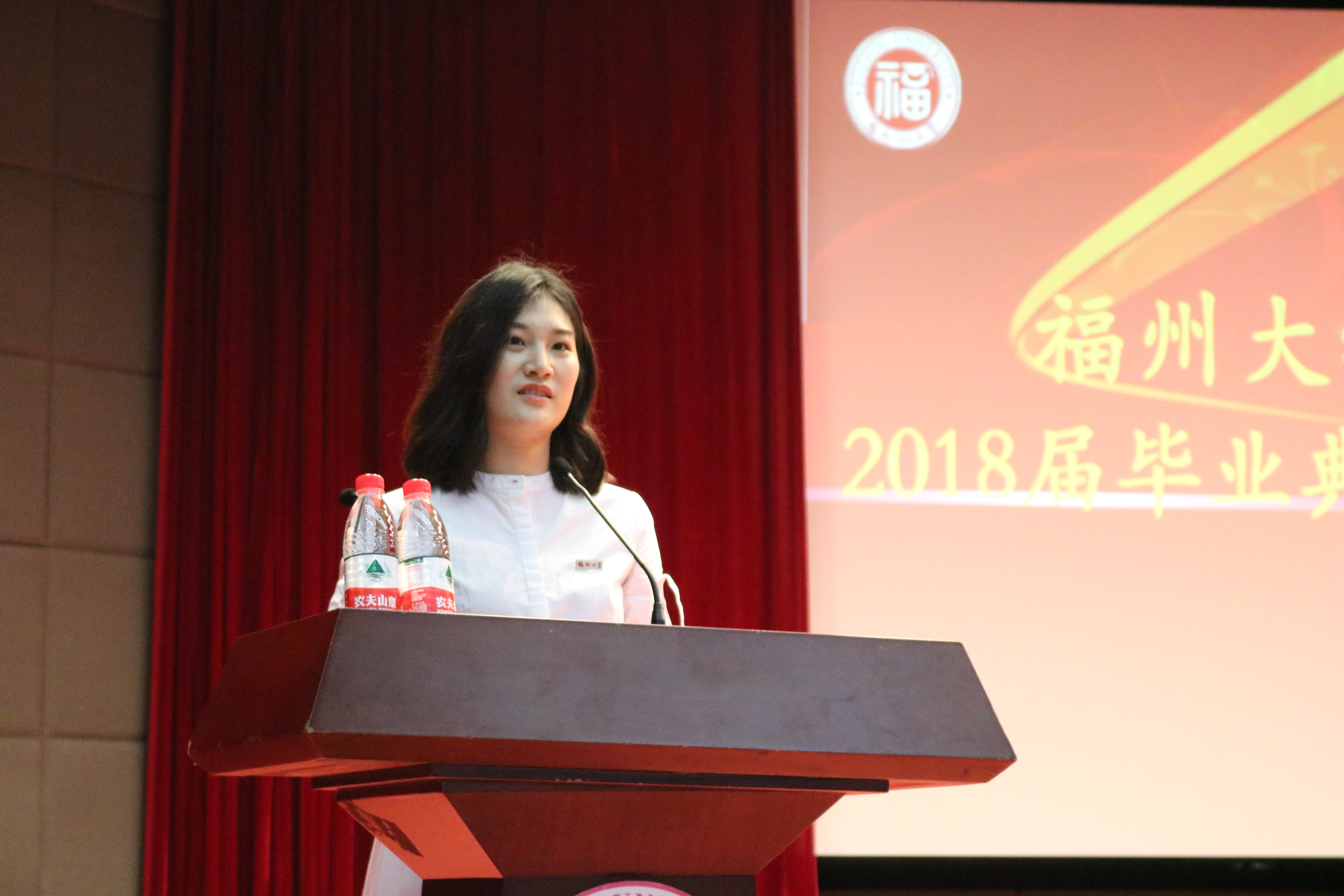 颁奖仪式过后,毕业生代表洪艺凡同学、家长代表郑淑程先生和教师代表徐冬梅分别上台发言。洪艺凡同学回顾了在金沙集团1862cc成色四年里的经历,对领导老师、父母和同学们在成长过程中的关怀表示感激,表示将永远铭记对母校和老师的拳拳感恩之心,并祝福母校和学院的未来更上一层楼。家长代表郑淑程先生对学院和老师表示了感谢,感谢他们让自己的孩子在大学四年里成长得更好,并对所有同学送上了毕业祝福。教师代表徐冬梅深情回顾了教书过程中与同学们的珍贵记忆,她向同学们提出了三句“贴心话”:一、不忘初心,始终让自己处于积极上进的氛围之中;二、人生是一种修行,谨记与人为善的处事原则;三、坚持发扬诚信的普世美德。最后她向毕业生们送上真挚的祝福与殷切的期望,希望同学们有空常回母校看看。