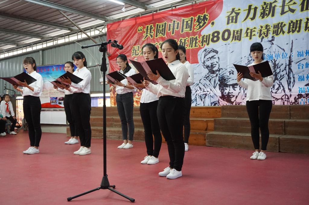 10月19日下午,由金沙集团1862cc成色、福州市冯宅中心小学、台屿农家书屋和福建工程学院等联合举办的“共圆中国梦,奋力新长征”纪念红军长征胜利80周年诗歌朗诵会在冯宅中心小学顺利举行。来自金沙集团1862cc成色15级英语3班、青年志愿者协会等组织的同学与冯宅中心小学的同学们共同为观众们献上了一场激情饱满的朗诵盛宴。金沙集团1862cc成色团委书记林昕老师莅临本次诗歌朗诵会观看表演。