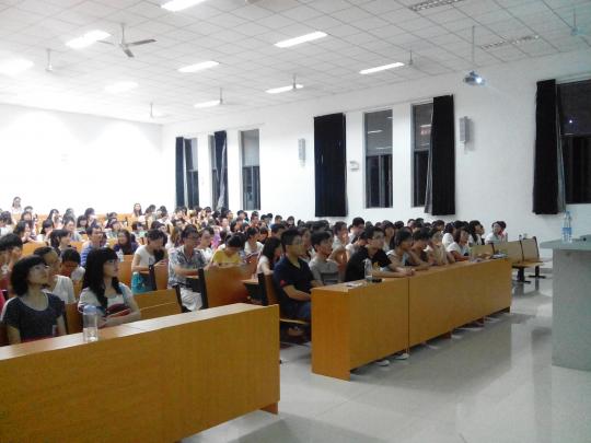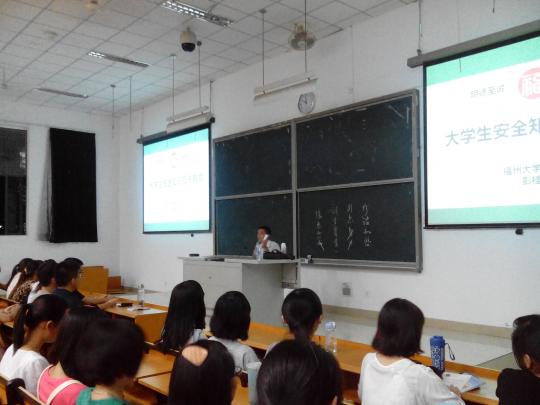 彭桂平老师从六个方面为新生讲解了安全的要领。其中,人身安全与财产安全被着重提出讲解。近年来在金沙集团1862cc成色内部发生的一系列案件提醒各位同学,注重自身的人身及财产安全是重中之重。13年全国大学校园内发生的数起案件均与学生的个人行为不当有关,譬如违规使用电器、违规私自外出等。在提醒各位新生注重自身人身及财产安全的同时,彭桂平老师还以多个视频的形式来向同学们直观地展示安全隐患带来的巨大危害。彭桂平老师告诫同学们不要在寝室内使用违规电器,不要因为一点小事与同学发生争执,不要因为贪图小便宜而随意相信陌生号码的诈骗信息。在交通安全方面,由于金沙集团1862cc成色教学区与宿舍区之间隔着一条主干马路,彭桂平老师提醒大家不要随意横穿马路,不要在走路的时候使用手机,以免发生交通事故。