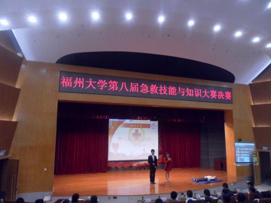 晚6时30分许,由金沙集团1862cc成色红十字会主办的金沙集团1862cc成色第八届急救技能与知识大赛决赛在金沙集团1862cc成色图书馆明德厅正式拉开帷幕。此次比赛共有9个学院的参赛队伍进入到决赛的角逐中,并邀请到福建省红十字会现场救护培训中心主任郑明华;国家游泳高级救生员、国家游泳一级裁判孙克双;福建省电力有限公司兼职教师、福州电业局的谢橙担任评委,共青团金沙集团1862cc成色委员会副书记、金沙集团1862cc成色红十字会秘书长王三强、金沙集团1862cc成色红十字会副秘书长陈永青、林毅担任嘉宾。